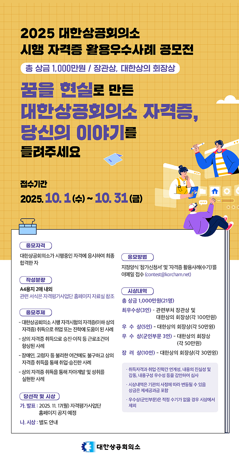 ‒ | [대한상공회의소][홍보]2025 대한상공회의소 시행 자격증 활용우수사례 공모전 |